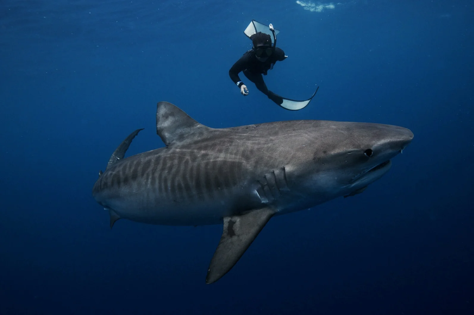 My complete fascination with sharks continued to thrive throughout my studies and after. I was approached by producers of Discovery Channel's "Shark Week" in 2014 to be featured on an episode highlighting the large predatory shark species of Hawaii. It was during filming that I met photographer and shark conservationist Juan Oliphant. I went on to join the One Ocean Diving/Water Inspired team (founded by Juan Oliphant and Ocean Ramsey) where I learned how to interact in-water with these incredible predators and conduct pelagic field research surveys. Fate had finally brought me into the incredible world of sharks.